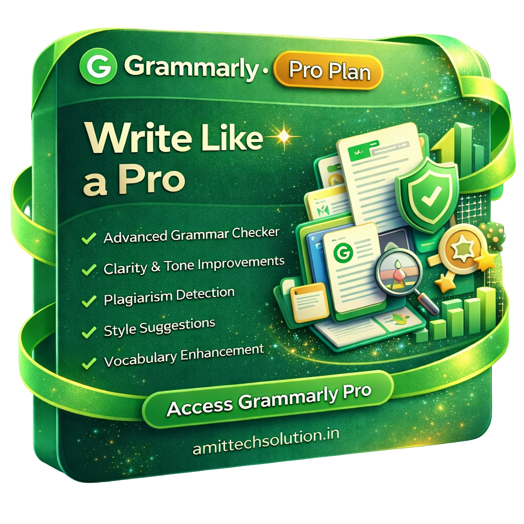Grammarly Pro Plan – Write Like a Pro Improve your writing with advanced grammar correction, clarity & tone enhancements, plagiarism detection, and premium style suggestions.